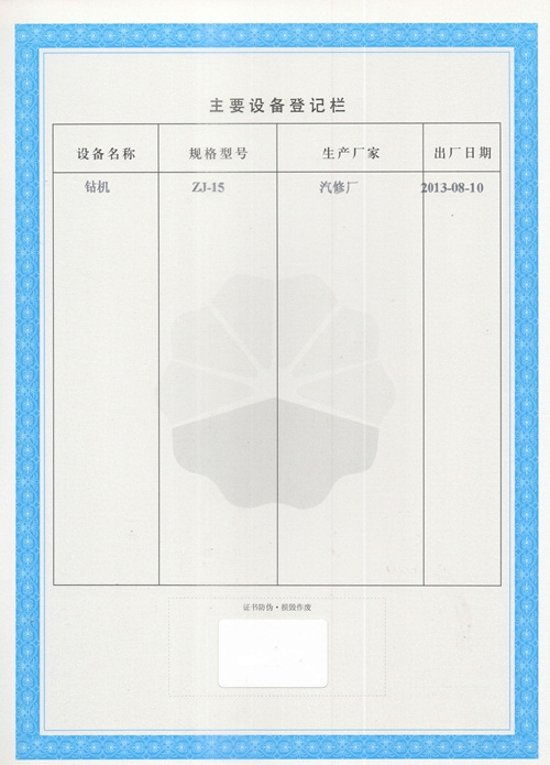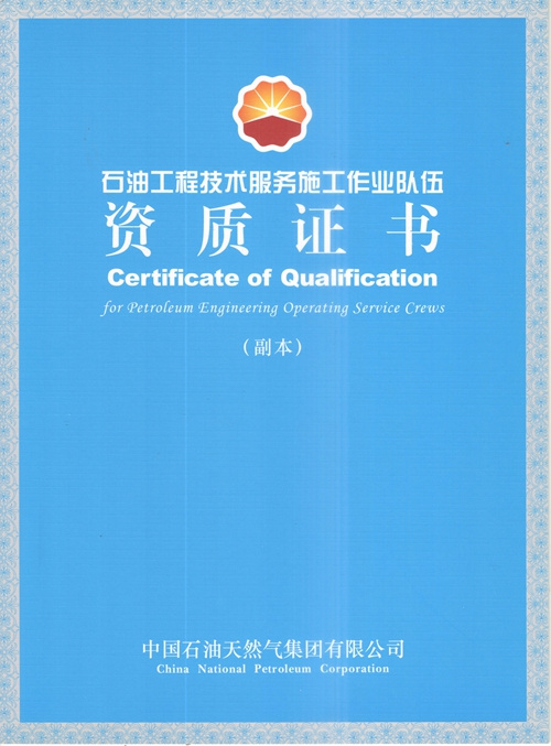大慶東油15001隊(duì)(大慶油田)資質(zhì)證書